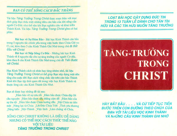 Trong phần cuối của tập tài liệu nầy là những tấm câu gốc ghi lại 13 câu Kinh Thánh ghi nhớ trong loạt bài học “Tăng Trưởng trong Christ”, những tấm thiệp nhỏ và gọn nầy giúp Bạn có thể mang theo trong xách tay hay bỏ vào túi áo, và ôn lại trong khi có thì giờ rỗi rảnh.